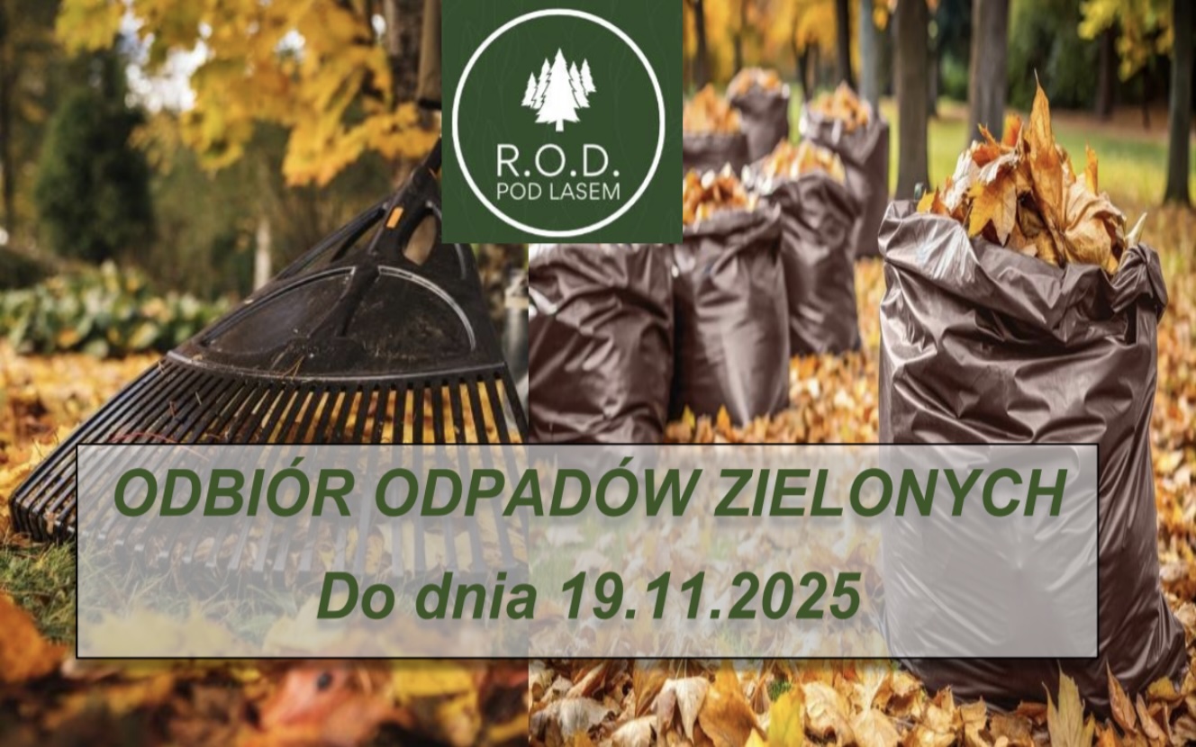 Zarząd R.O.D. „Pod Lasem” informuje, iż istnieje możliwość odbioru przez odpowiednie służby komunalne odpadów zielonych (liści). Zgromadzone przez Działkowców liście w przeznaczonych do tego workach należy gromadzić przy bramach alejowych od strony ogrodu do dnia 19.11.2025 (po tym terminie odbiór liści nie będzie możliwy).